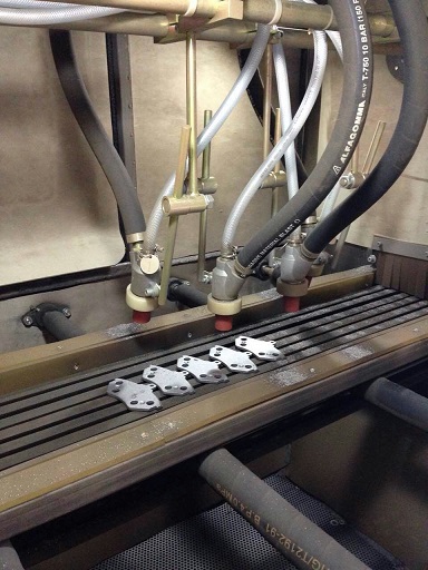 剎車片簡介 剎車片也叫剎車皮。在汽車的剎車系統(tǒng)中,剎車片是最關(guān)鍵的安全零件,所有剎車效果的好壞都是剎車片起決定性作用,所以說好的剎車片是人和汽車的保護(hù)神,剎車片一般由鋼板、粘接隔熱層和摩擦塊構(gòu)成,鋼板要經(jīng)過涂裝來防銹,那么剎車片生產(chǎn)過程中粘結(jié)過程中,噴砂、拋丸是一道非常重要的工藝,經(jīng)過噴砂、拋丸的剎車片、可以使粘結(jié)更加牢固、更加穩(wěn)定。 吉川科技針對剎車生產(chǎn)的工藝要求,研發(fā)設(shè)計出一款剎車片專用噴砂機(jī),噴砂效率高,噴砂質(zhì)量穩(wěn)定,環(huán)保無污染等